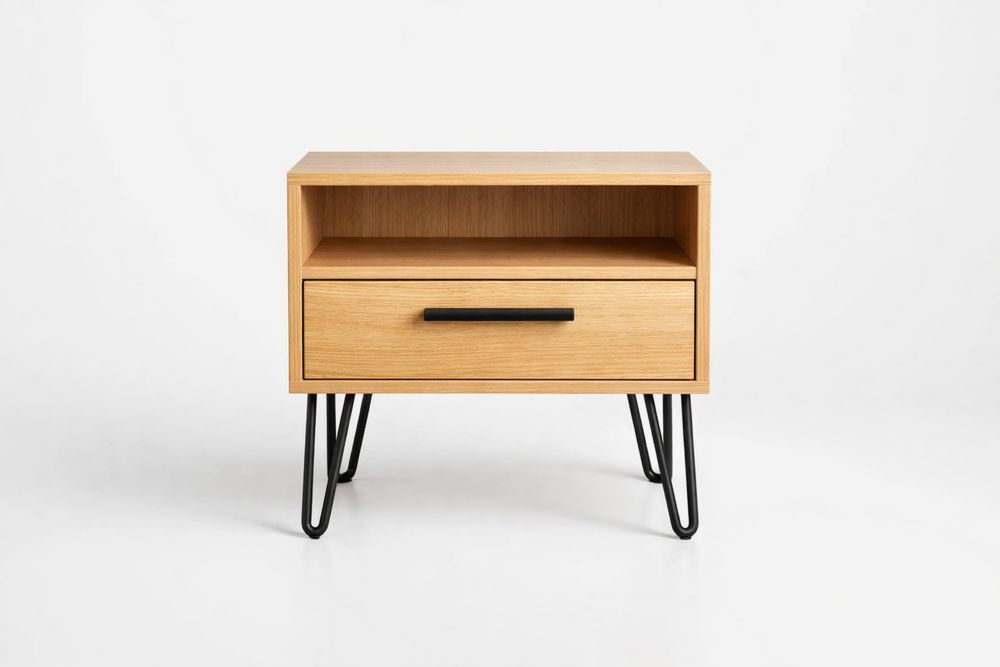 Table de Chevet en Chêne avec 2 Tiroirs 45x30x55 cm
